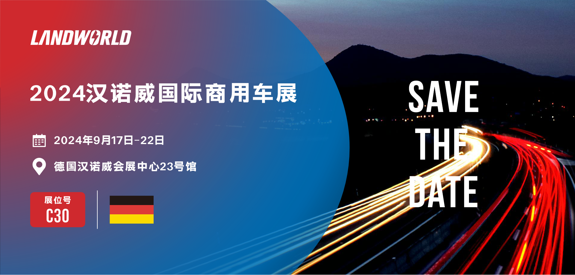 9月17日至22日,2024汉诺威商用车及配件展(下文简称:IAA)将在汉诺威展览中心开展。陆巡科技将亮相展会现场,在IAA23号馆C30展位期待您的到来。