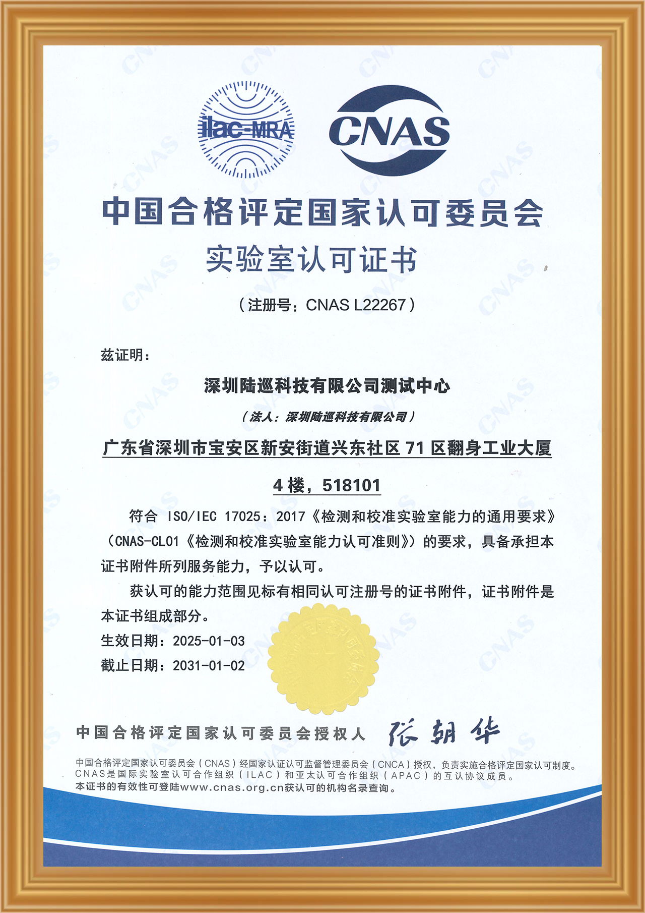 近日,深圳陆巡科技有限公司(下称“陆巡科技”)测试中心成功通过中国合格评定国家认可委员会(CNAS)的实验室认可评定,获得其授予的实验室认可证书。这是公司在2025年获得的首个权威认证,充分体现了实验室在管理体系和检测能力上的专业水平,为国际化发展和产品质量提升提供了坚实保障。